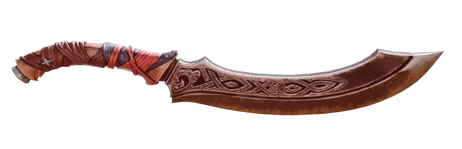 Background: Thavnair in design and make, this blade was used by the cunning co-captain of the Faux Talons. Made of light but sturdy metal, the edges have been sharpened for slicing and the point, sharpened. A beautiful piece for either collection or proper use.