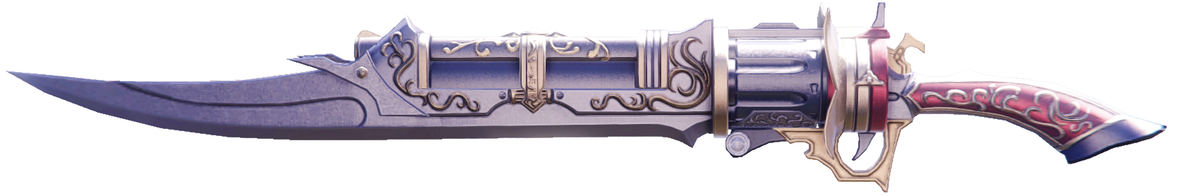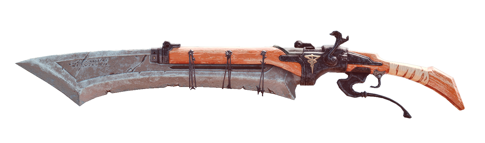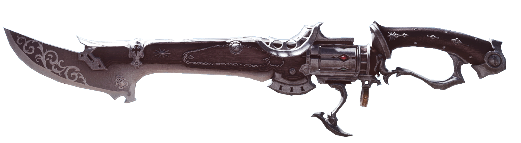 Background: Crafted by a thavnairian smith, this gunblade sports a humble but decorative design. Eight chambered aetheric rounds and a blade able to break through lesser metals if given enough force. Dense and sharp.