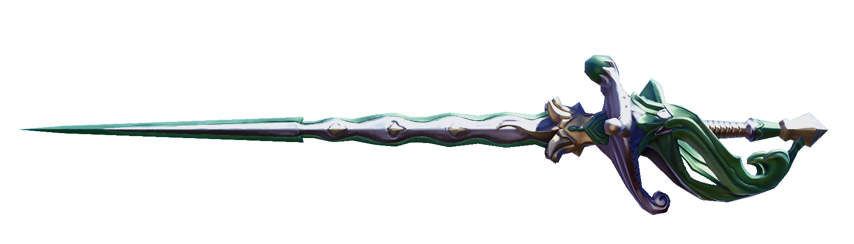 Background: Made using treated metals in the Gridanian’ design, this blade celebrates the Twelveswood’s local ores while appearing as green and lively as the plant-kin around them. The elegant design sports a useful guard design as well as offering counterbalance at the bottom of the hilt.