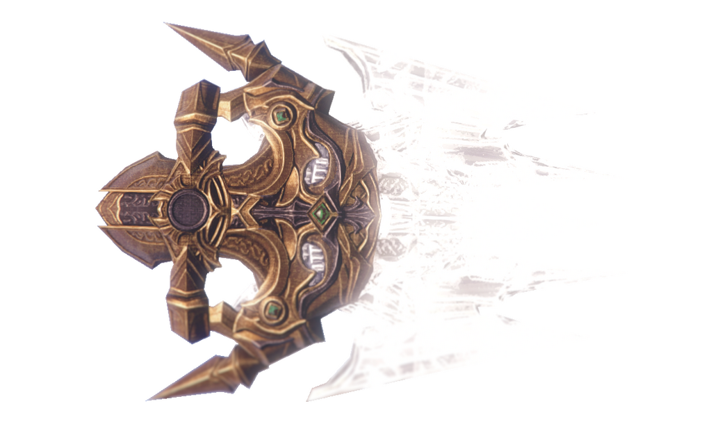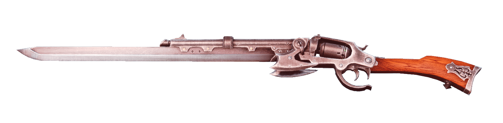 Background: Crafted by a thavnairian smith, this gunblade sports a humble but decorative design. Eight chambered aetheric rounds and a blade able to break through lesser metals if given enough force. Dense and sharp.