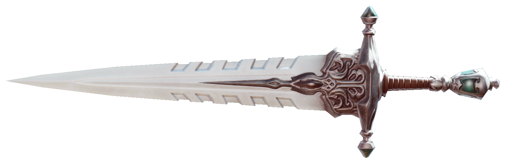 Background: Thavnair in design and make, this blade was used by the cunning co-captain of the Faux Talons. Made of light but sturdy metal, the edges have been sharpened for slicing and the point, sharpened. A beautiful piece for either collection or proper use.