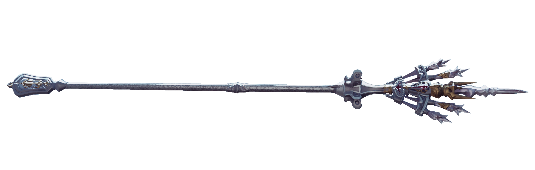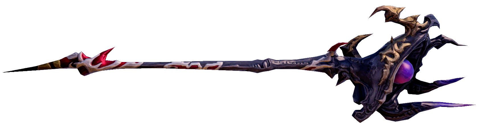 Background: This unusual staff was wielded by a mage who used many Qiqirns to summon and wreak havoc with a large and powerful voidsent. It is made of evergleam steel and features a rubellite catalyst.