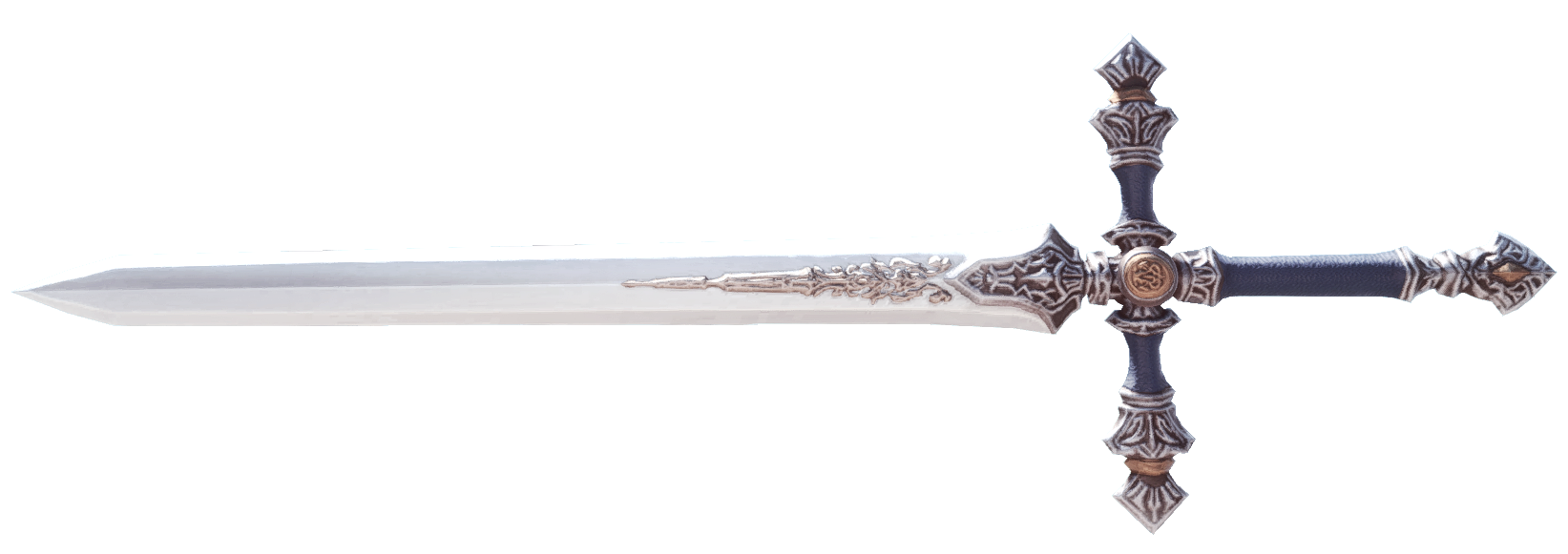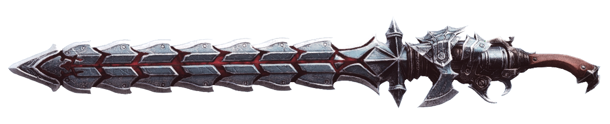 Background: This sword is made of chromite dyed to a gentle black and features hardsilver accents. It’s on the heavy side and requires a firm grip and swing.