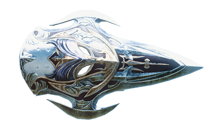 Background: Hosting a crest of the four high houses of Ishgard, this lance was left behind in the back of a carnosaur in the wastelands of Dalmasca. The wooden portion has been replaced, offering these metal pieces a fresh new start. Lightweight.