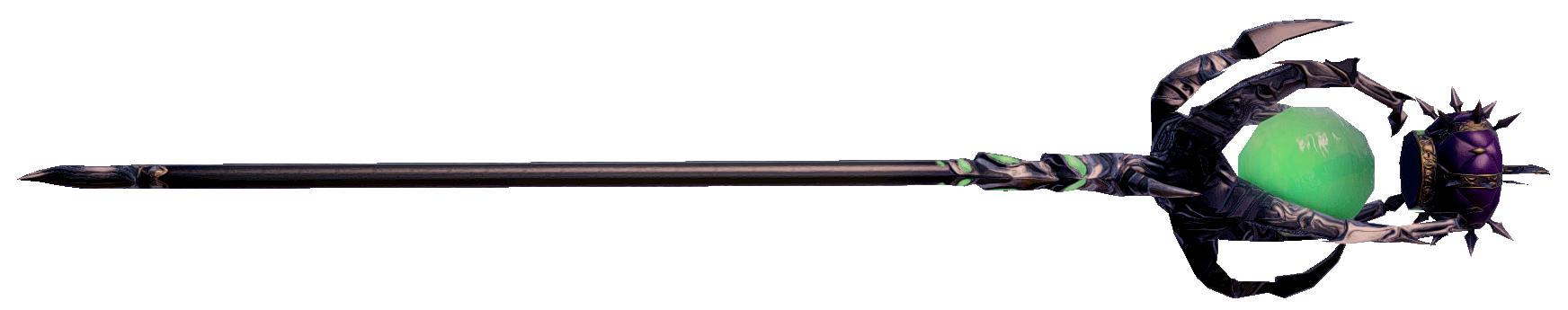 Background: The weapon of the drug fiend Hawkstrike. Found out in the east Shroud, two crystals top and cap the bottom of this staff. Highly conductive to electric energy, any mage who loves to strike Thunder on their foes ought to try this out for size.